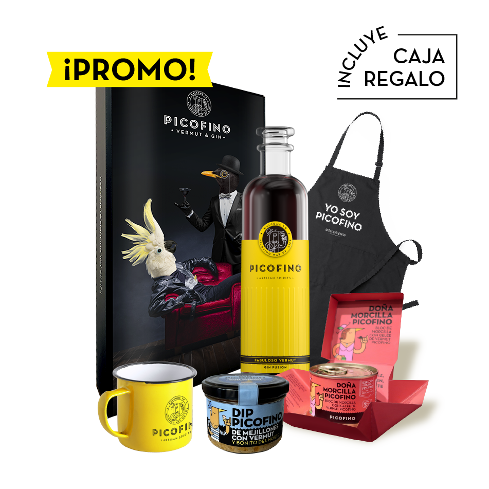 Selecciona 2 botellas para incluir en tu caja regalo Picofino junto con el delantal y la taza. Caja regalo gratis.